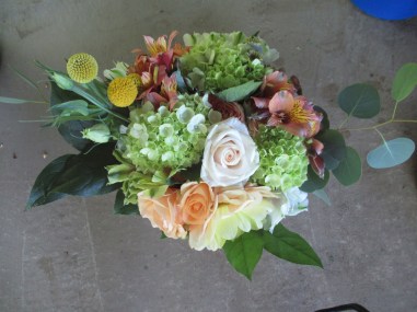 Flower colors for this wedding were greens and blushes with a bit of yellow. These photos don’t do the setting or the flowers justice. Hoping for better photos from the official wedding.