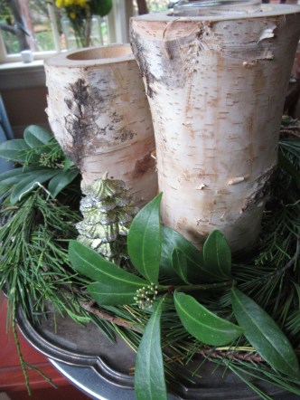 3 pieces make up the last tablescape using the evergreens from photo 1