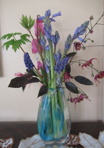 Right now in the garden, the plant I love to hate — bluebells. They are everywhere, spread somehow (ants?). And yet, this time of year they bloom and I love the skyblue-ness of them.